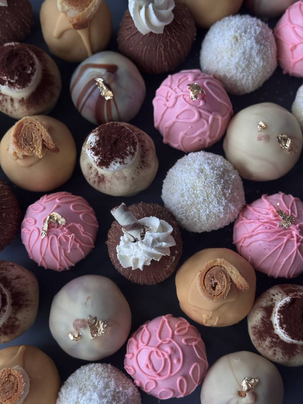 Пинк леди. Ванильный розовый бисквит , клубничный крем и клубничный центр.